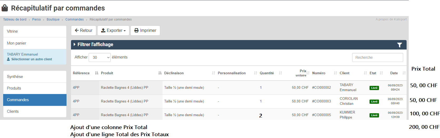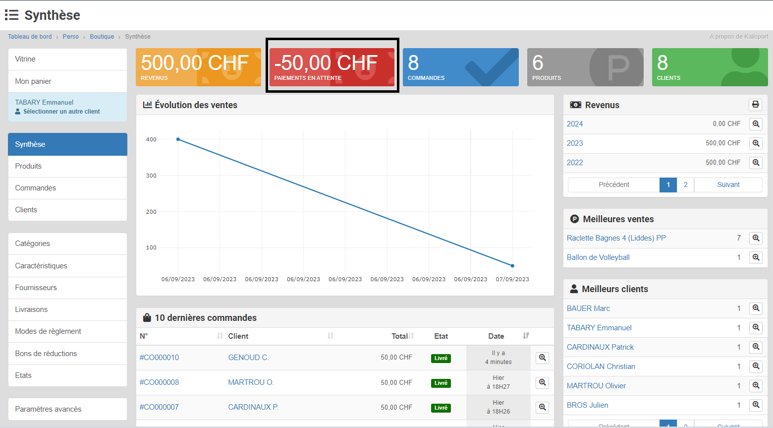Kalisport - Tableau de bord - Perso - Boutique - Synthèse - Dynamisation des vignettes de synthèse