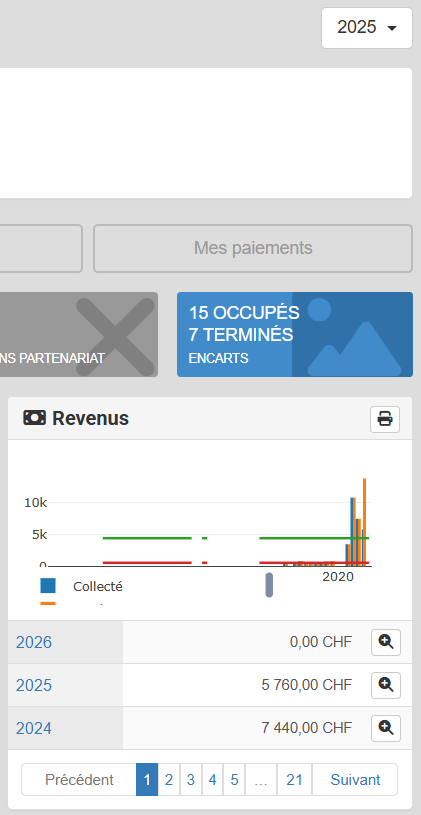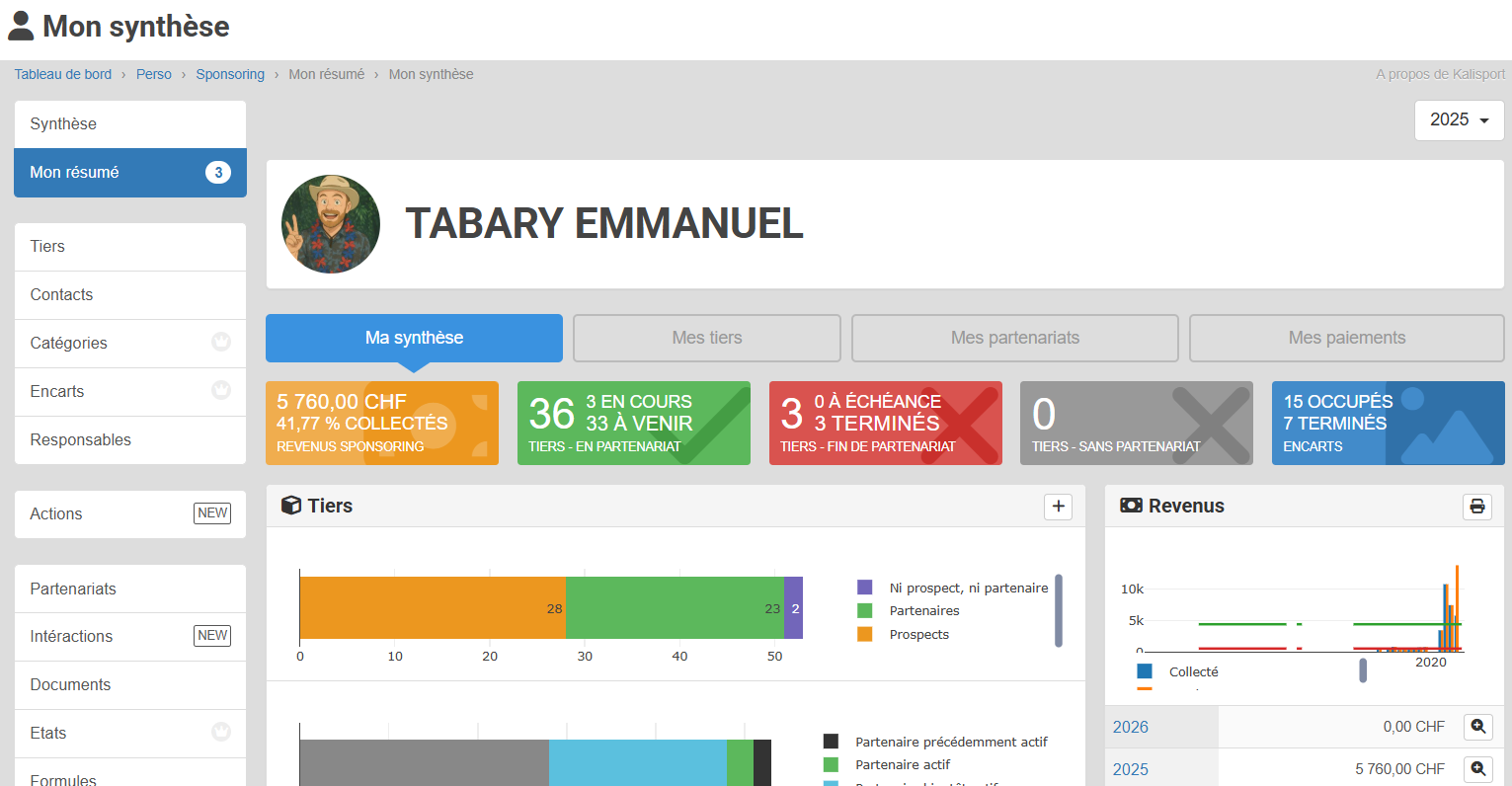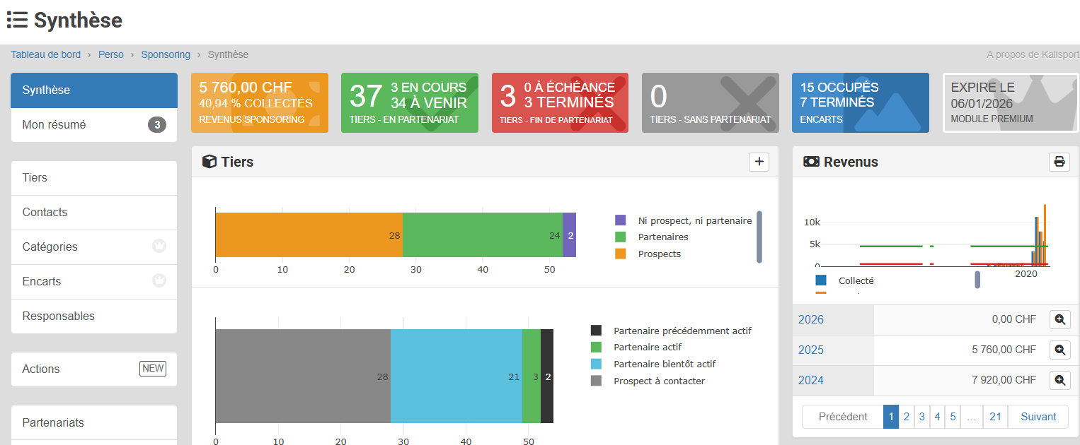Aujourd'hui, le module Sponsoring ne permet pas de gérer l'affichage des données des listes et des graphiques en fonction de la saison sélectionnée en haut à droite de l'écran.