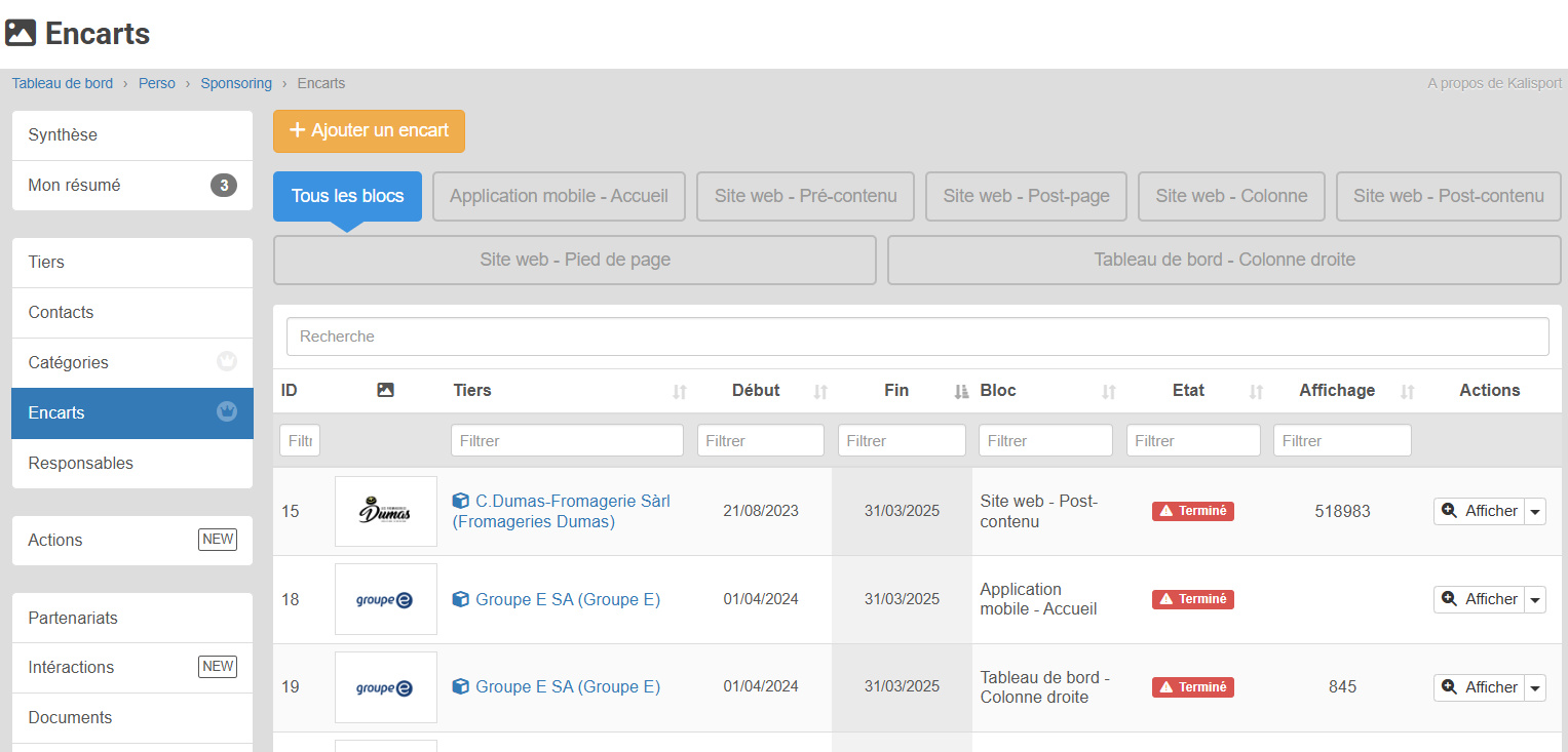 Module Sponsoring - Introduction de l'affichage par saison (saisonnalité des données)
