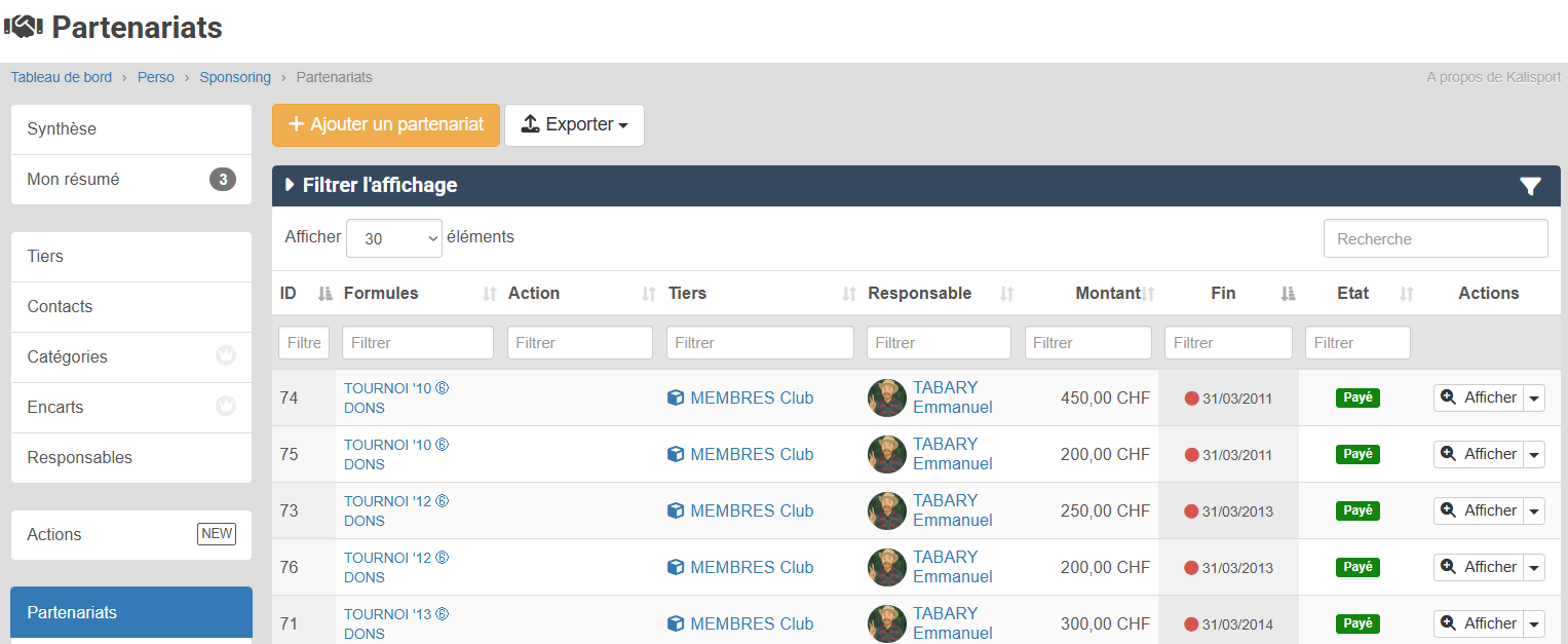 *** Pour assurer la transition pour les clubs utilisant déjà le module, l'application (ou pas) de ces nouvelles possibilités pourraient être gérer à travers des options de configuration du Menu Paramètres avancés du module Sponsoring.