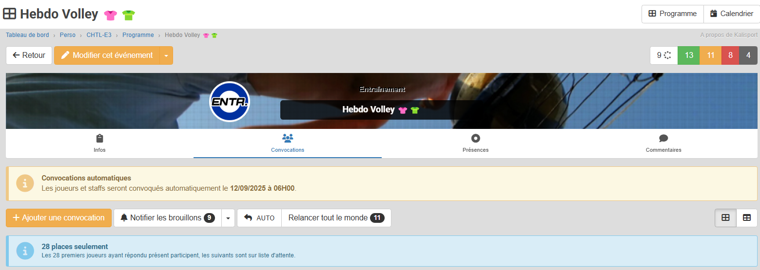 Optimiser l'espace d'affichage de la page Participants d'un évènement vs Nombre de places Max + Date de convocation auto