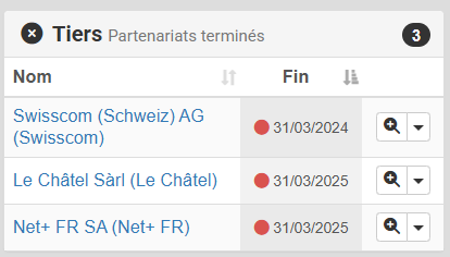 Cette liste devrait trier par défaut les partenariats de la date de fin la plus récente à la plus ancienne.