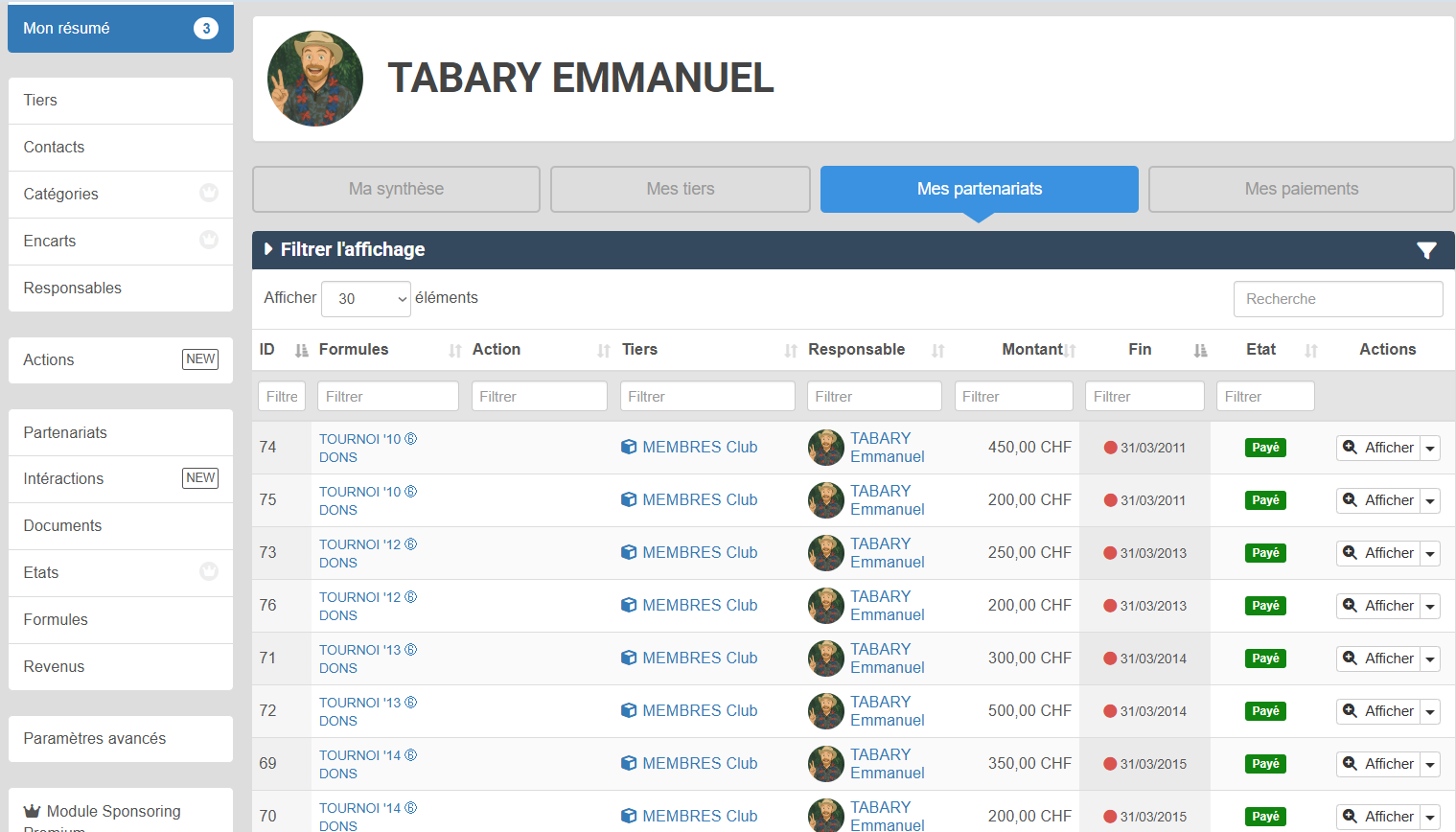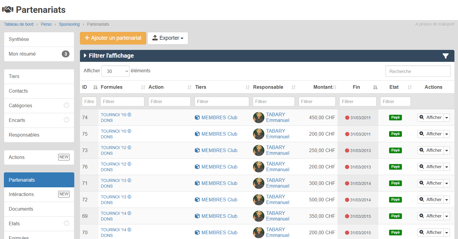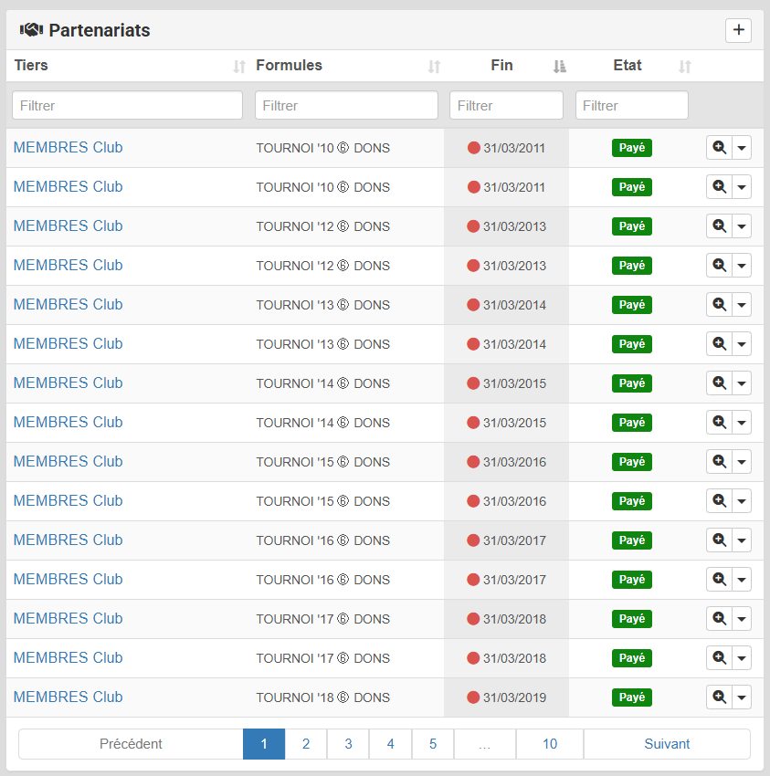 Si, par exemple, vous regardez la copie d'écran jointe, vous verrez que le module affiche en premier des partenariats de 2014. Il faut donc systématiquement se rendre à la page 6 pour commencer à travailler ou utiliser la fonction filtre rapide pour sélectionner par exemple tous les partenariats qui se terminent en 2026.