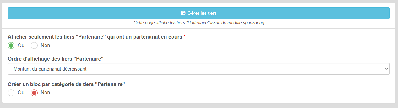 Ces niveaux de partenariat sont gérés dans le module de Gestion des Sponsors par le gestion des Formules.