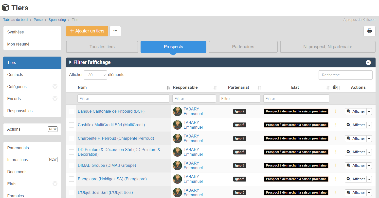 Module Sponsoring - Menu/Page Tiers - Intégrer le graphique 2, affiché sur la page de synthèse, en haute de page de dans chaque onglet / type de Tiers