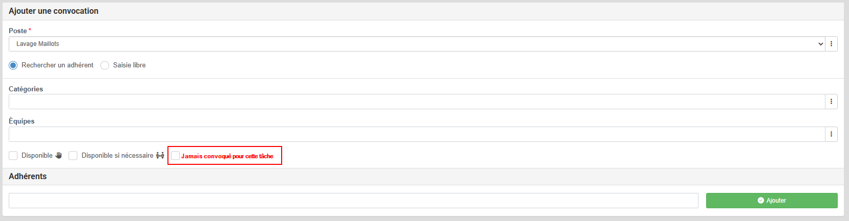 Lors d'une convocation "Organisation" avez-vous envisagé d'ajouter un filtre "Jamais convoqué pour cette tâche". Cela serais utile afin de répartir équitablement les rôles pour les différentes tâches (nettoyage du vestiaire, des maillot, du Bus, ...).