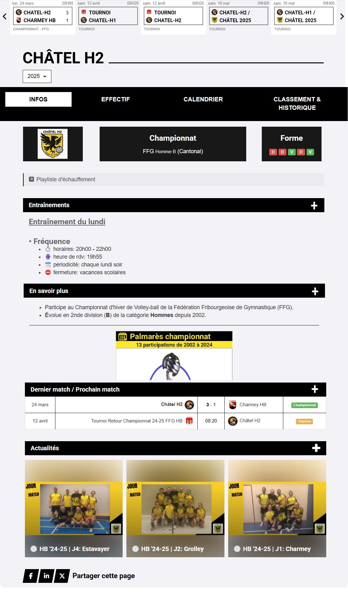 Aujourd'hui, lorsque l'on affiche la page d'une Equipe,