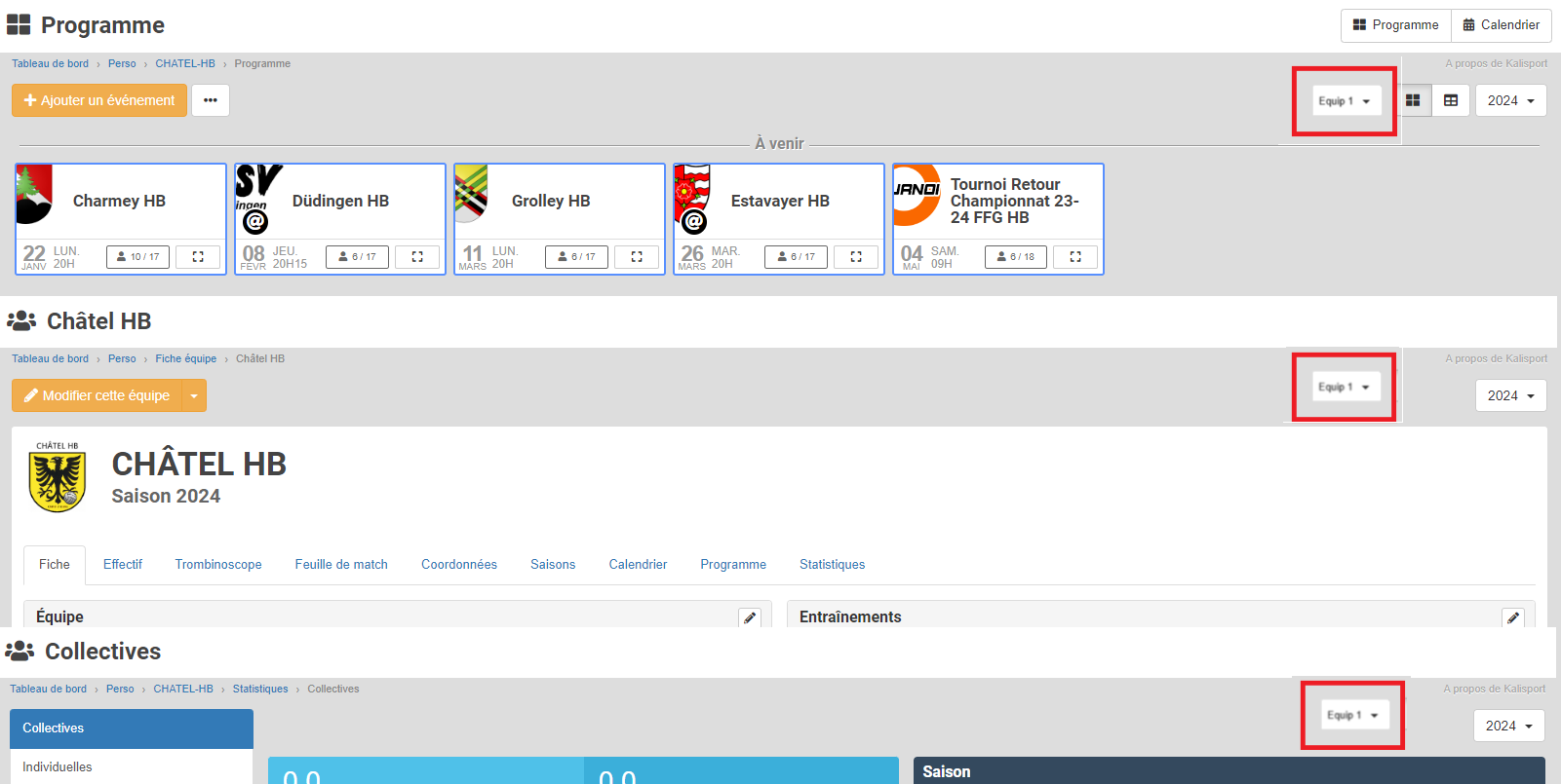Pouvoir changer d'affichage d'équipe directement dans la page de Programme/Calendrier, sans avoir à redescendre en bas de page dans la barre de menu