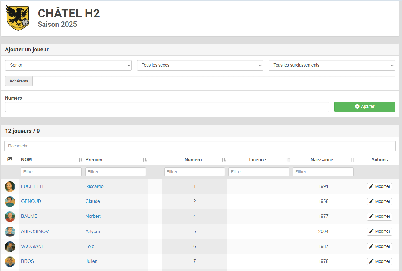 Compétition / Équipes / Équipe x / Liste des joueurs
