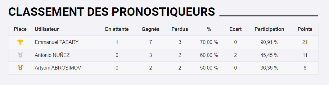 Bloc Classement du concours de pronostics - Possibilité de sélectionner la portée calendaire à afficher