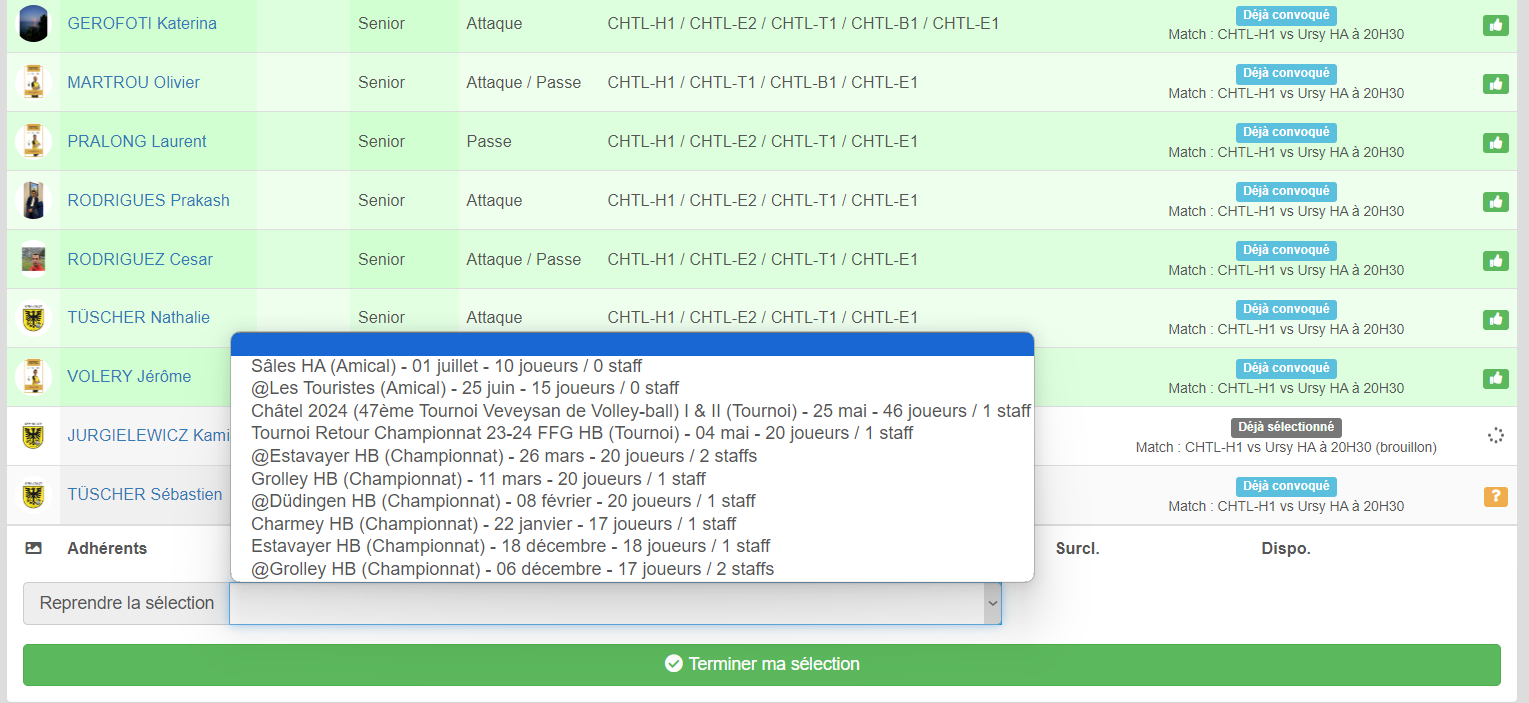 Cette fonction permet de reprendre la liste des membres précédemment convoqués à un match ou à un entraînement. C top.