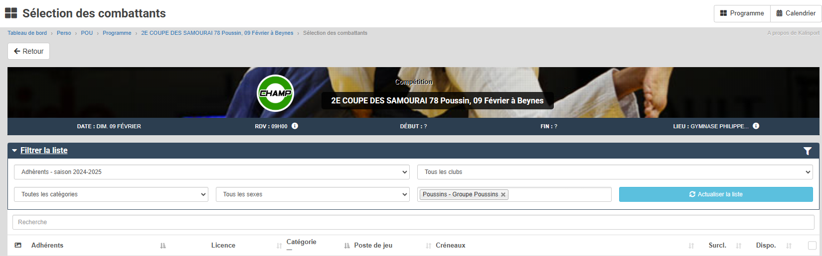 Un exemple de l'extranet de la FFJUDO qui montre ce dont on a besoin pour une inscription.